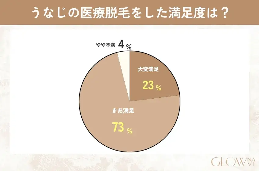 アンケートでは、90%以上の方がうなじ襟足脱毛に満足していると回答しました。多くの方は、クリニックでのうなじ襟足脱毛にて満足する結果を得られたようです。
