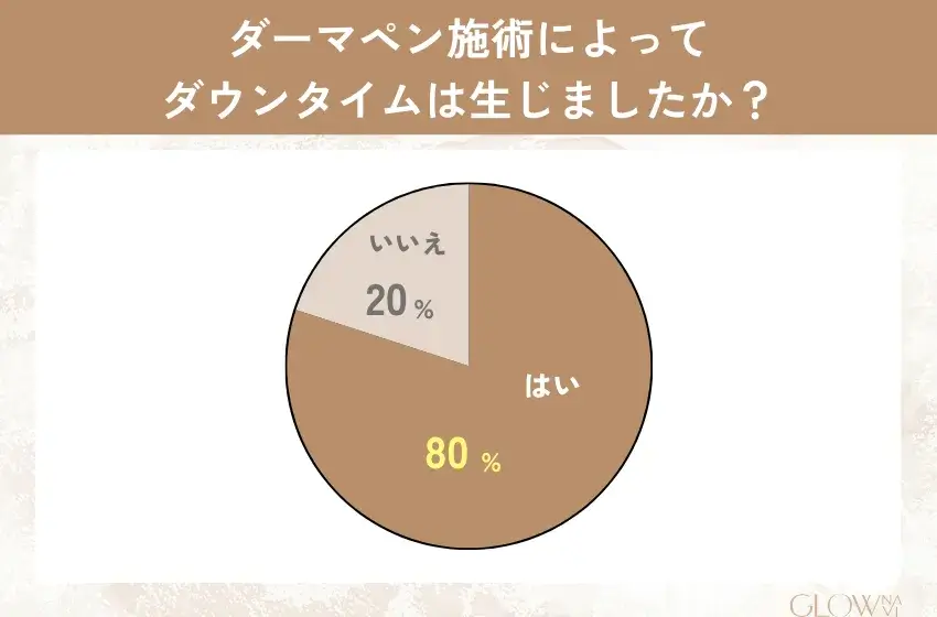 80%の方がダーマペン治療によるダウンタイムがあったと答えています。
