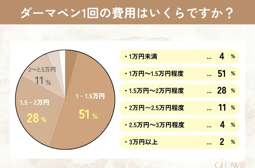 施術部位や治療方法によっても異なります。ダーマペン4で全顔の場合は1回あたり20,000円前後で、他の薬剤と組み合わせると料金が高くなる傾向です。