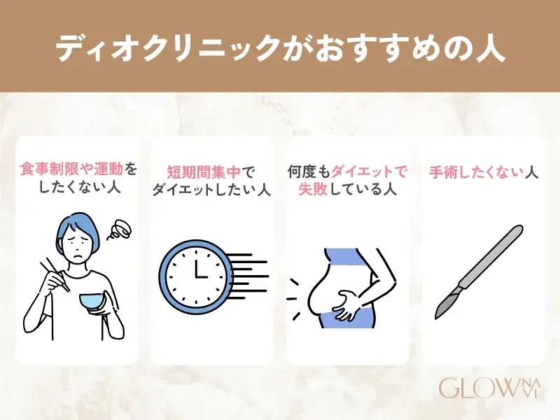 ここでは、ディオクリニックがおすすめな人の特徴を3つ紹介します。詳しい特徴は次のとおりです。