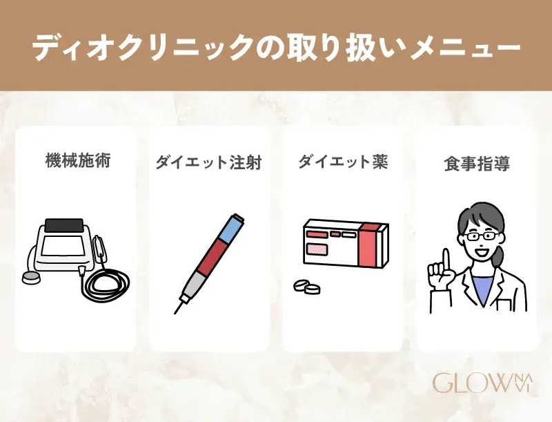 ディオクリニックの取り扱うメニューは次のとおりです。
