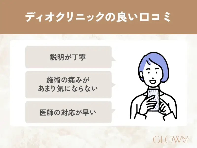 ディオクリニックの良い口コミの傾向としては、次のようなものが挙げられます。