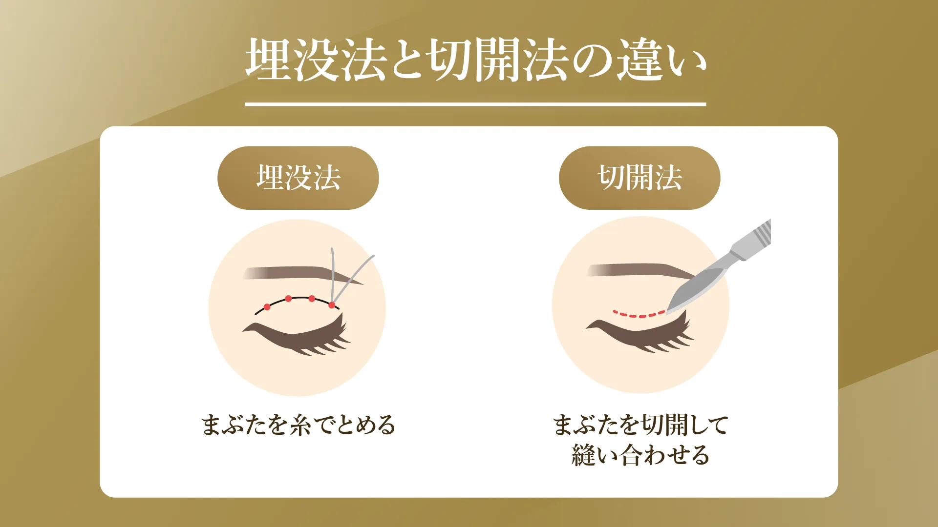 埋没法はプランが豊富なため、自分に合った施術を見つけやすいでしょう。切開法では、全切開と部分切開の2種類のプランを選べます。カウンセリングではシミュレーションをしながら提案をしてくれるので、認識のズレが生じにくいでしょう。