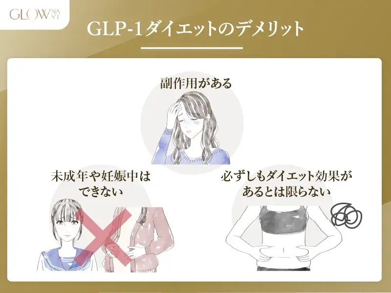ただし、GLP-1ダイエットには副作用として、吐き気や下痢、便秘などが報告されているので注意が必要です。