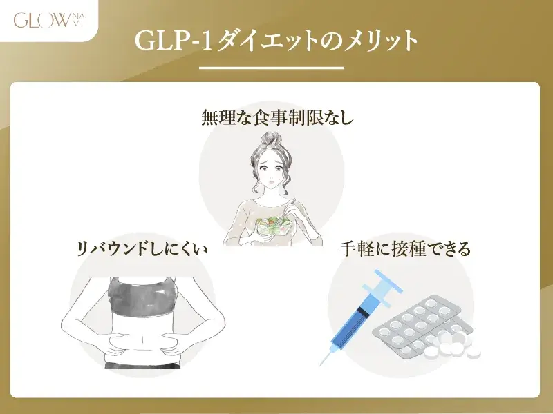 GLP-1ダイエットは、自然に食事量を抑えられるため、無理に食事制限をすることなく続けやすいダイエット法です。