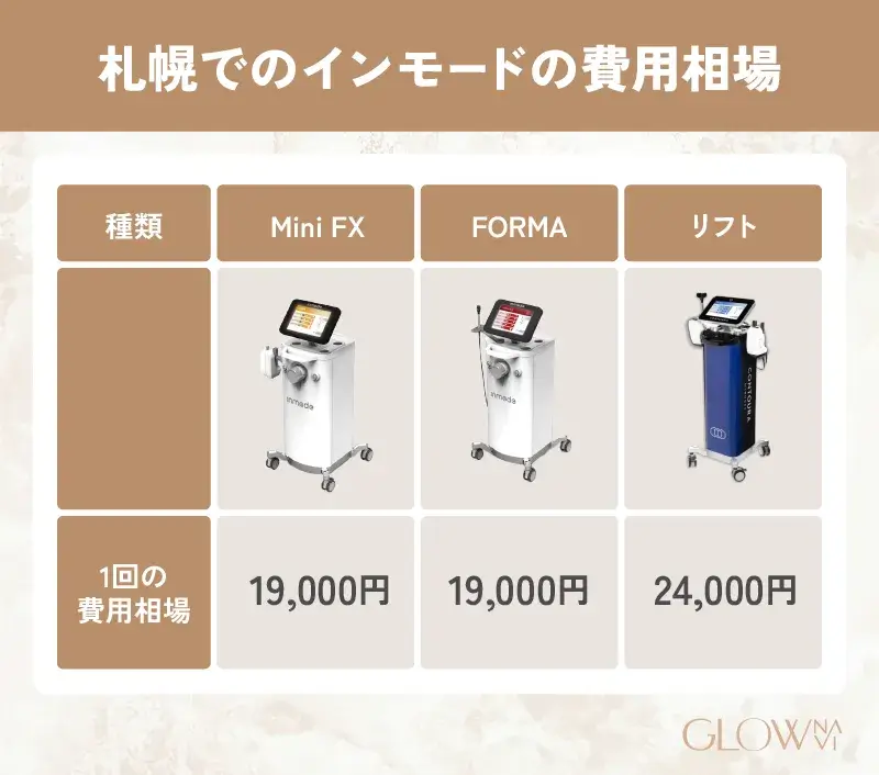 • 札幌のインモードの費用相場は16,000~20,000円(税込)が目安