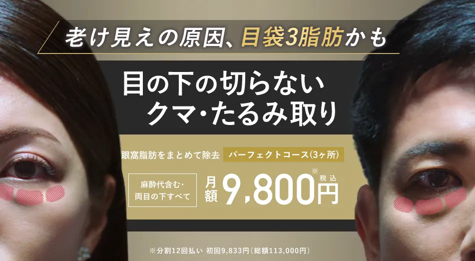 クマ取りは切開する施術方法もありますが、切らずに脂肪を取る施術はダウンタイムや負担がほとんどなく、低リスクで受けられます。現在では切らない施術も効果が高く、費用も安いのでぜひチェックしてみてください。