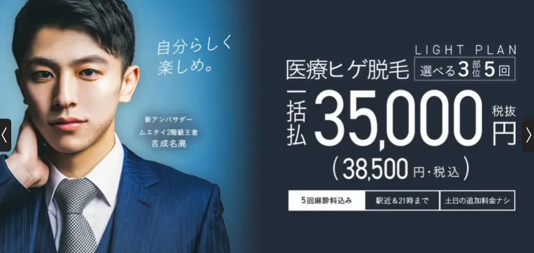 - ヒゲ脱毛は1回あたり2,800円なのでお試しにも!