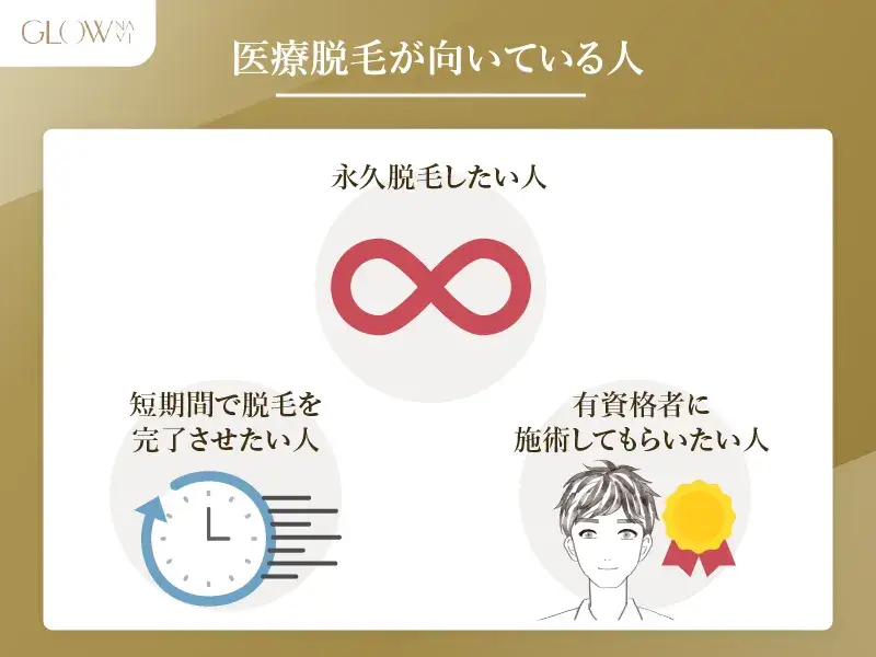 どちらが良いかは人それぞれ異なりますが、永久脱毛ができるのは医療脱毛だけです。体毛の悩みから解放されたい人は、医療脱毛での脱毛が向いているでしょう。