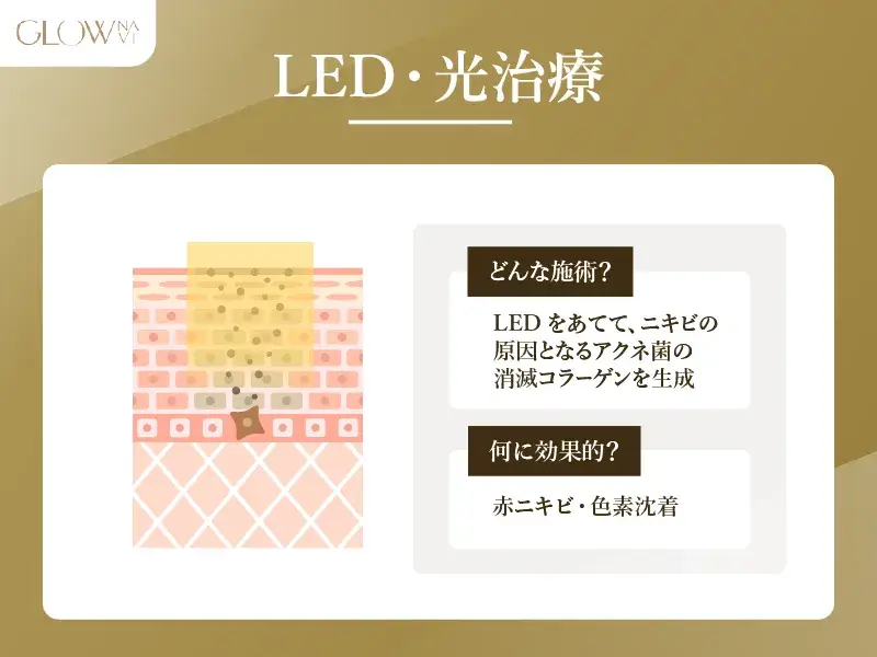 より効果的なニキビ跡治療として、ダーマペンやレーザー治療、LED・光治療がメジャーとなっているといえるでしょう。