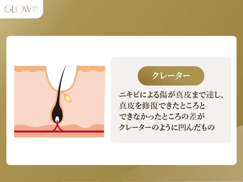 しかし、炎症が繰り返し続いてしまう場合や、ニキビをつぶしてしまうとニキビ跡がクレーターになることがあります。